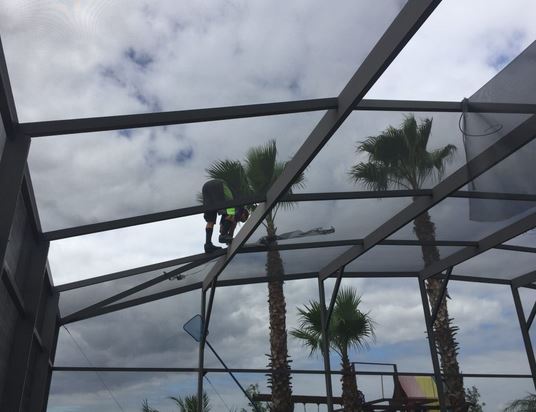 Whether you have one or several panels out, we will check your entire pool enclosure for any additional damage to screen panels. There are times when you may not be able to see damaged screens from the ground. Our technicians will check them all, even the roof, for damage or missing, loose spline.